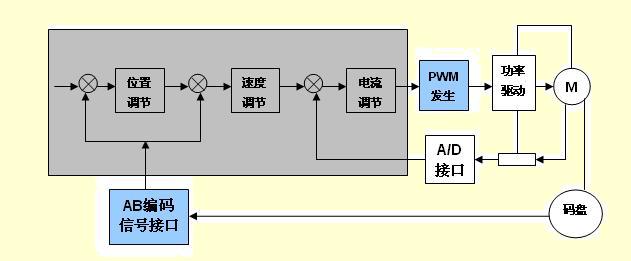 此处以无刷直流数字伺服驱动器为例。一个无刷直流电机的控制原理框图可以用下图4来表示。