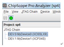 在“ChipScope Pro Aanlyzer”界面中,点击菜单“JTAGChain à Xilinx Platform USB Cable…”。