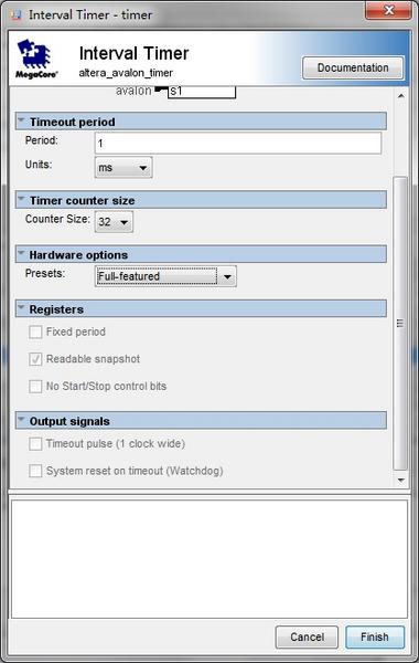 接着添加定时器,在搜索框输入timer 配置定时单位,位宽,这里我们设置为1ms,32位,在硬件选项对话框里一般选择 full—featured,当然也可以手动配置一些参数选custom