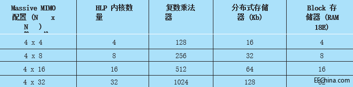 我们设计的 HLP IP 便于用来创建更大的大规模 MIMO 预编码内核。表 2 列出了一些应用方案以及重要资源的使用情况。您需要一个额外的聚合级以提交最后的预编码结果。