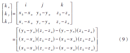 :Tx-y-z→Bx-y-z。于是,法线D的方向矢量为: