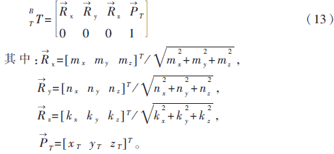 三角形TaTbTc所在坐标系为Tx-y-z,它在参考坐标系Bx-y-z中的位置与姿态的描述可用一个4×4的变换矩阵