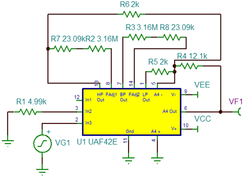 这里需要注意一点,基于UAF42的陷波器电路的陷波中心频fo和滤波器Q参数可以分别设置。
