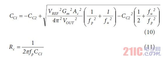 图8中的补偿值可以按照下式计算。由于假设使用陶瓷输出电容,因而可以将CC2选为10 pf。
