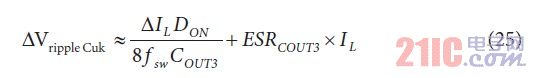 C'uk(负)输出的峰峰值输出电压纹波(Δ Vripple C'uk)可通过下式近似计算: