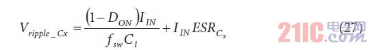 SEPIC(正)输出的峰峰值输出电压纹波(ΔVripple SEPIC)可通过下式近似计算:
