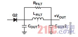 生阶跃变化。即便使用陶瓷电容,由于其电感影响,这些开关尖峰也不能得到很好的衰减。因此,常常需要在SEPIC绕组的输出端放置一个小的阻尼输出pi滤波器。