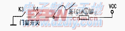 与非逻辑的控制作用:IC1A的①脚平时通过R4接地,③脚输出恒高,④脚=③脚,⑥脚输出恒低。(13)脚=⑥脚=低,⑧脚为低,蜂鸣器不响。整个电路耗电极小。