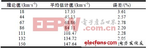分别设定v 为30 km/h、60 km/h、90 km/h、120 km/h、150 km/h,针对不同位置对车辆速度进行反复测量,其平均误差如表2 所示。当车辆接近静止时,由于不存在多普勒频移或多普勒频移十分微小,由系统设定v=0.随着车辆移动速度的提高,由于多普勒频移在夹角一定的情况下同速度呈正比,因此速度误差会随着fd 测量误差的减小略呈下降趋势。