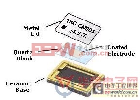 晶体的封装如图1所示,有三部分组成:金属上盖,带有电极的石英片和陶瓷底座。一般来说,还需要向密封壳内充氮气。
