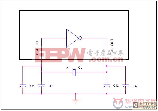 在基频谐振中C1为10-30fF,一般取值为20fF。C0取值与晶体的尺寸有关,一般取值为5pF。但是CL的计算与晶体外接电容和PCB设计和材料有关。下图是参考电路图