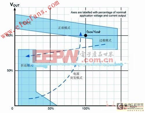 控制器拥有智能型设计,可以通过检测谐振时间来进行最低电压切换、决定占空比、设定限制电流以及进入待机模式。这5种数字控制模式如图4所示:待机模式、正常模式、过载模式、折返模式 (Foldback Mode) 以及电源突发模式(Power Burst Mode)。