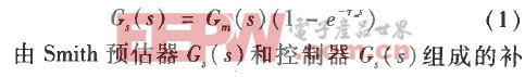 Smith预估补偿控制是克服纯滞后的一个有效的控制方法。其基本原理是与控制器Gc(s)并联接一个补偿环节,用来补偿被控对象中的纯滞后部分。这个补偿环节称为预估器,其传递函数为: