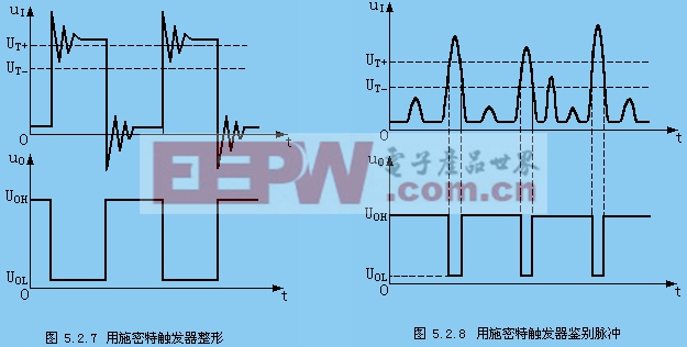 图5.2.6所示为用施密特触发器将正弦波变换成同周期的矩形脉冲。