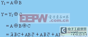 由真值表可看出:在输入A、B、C三个变量中,有奇数个1时,输出Y为1,否则Y为0,因此,图6.2.1所示电路为三位判奇电路,又称为奇校验电路。