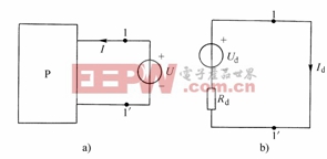 任一线性有源一端口网络(如图2-7-2(a)所示)对其余部分而言,可以等效为一个电压源