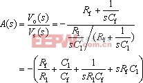 改变Z1(s)和Zf(s)的形式,可以实现各种不同的数学运算。对于图1a所示的电路,其传递函数为