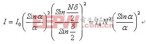 从波动光学可知: 多缝夫琅和费衍射的强度分布公式为: