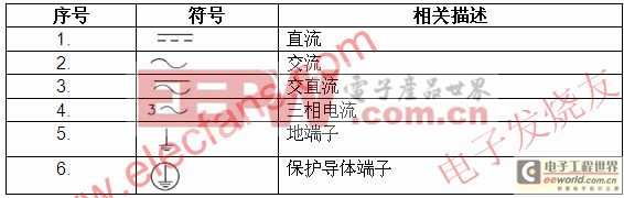 标识是设备不可缺少的说明性部分,生产商需要确保标识从外部可见,并且不在可移走的部分。除了手持设备或者因为空间有限等原因,标识不应在底部(表一为常见的标识图解)。标识一共有两种类型,分别为一般标示和警告标示。