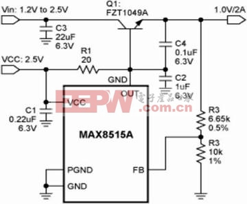 图1 利用MAX8515构成的低成本、大电流、小尺寸LDO