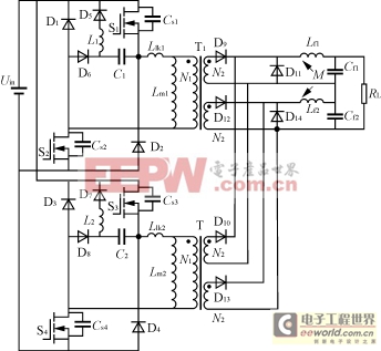 为了抑制开关管上在关断时由于变压器漏感所产生的电压尖峰,所以,在图1的电路拓扑中采用了LCD无损吸收网络[2]。