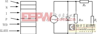 图1a-Si:H单电池结构 图2a-Si:H太阳电池的等效电路