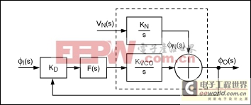 图2给出了PLL的相位模型。模型假设电源噪声VN注入到PLL/VCO,M和N分数比都设为1。