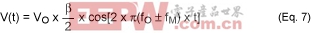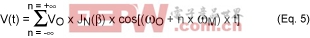 当单一频率的正弦信号fM叠加到PLL电源时,将在时钟输出产生一个窄带相位调制。通常可以用傅立叶级数表示相位调制: