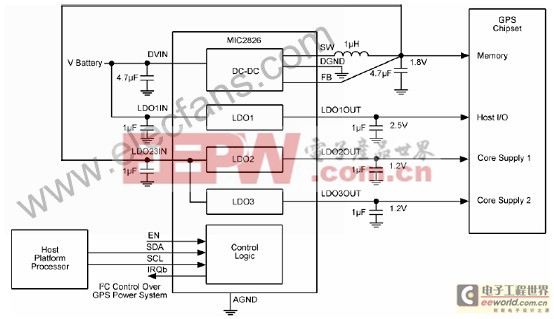 图2.MIC2826在GPS子系统的应用电路
