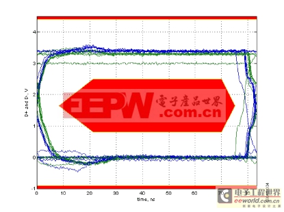 图3为全速眼图,显示ADuM4160能够提供充分张开的眼图,远离禁入区域。针对低速评估也获得了类似的数据。