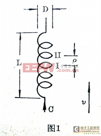 图1所示一般天线结构示意图。D是螺旋天线直径,L是螺旋天线长度,ρ是螺距,Ⅰ、Ⅱ是螺旋线上相对应两点。