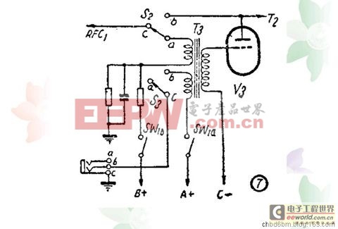 上面的线路好处是制作容易,但收发开关装在机器上,使用不方便。