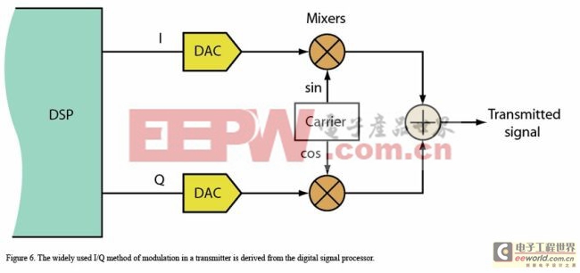 图6:在发射器中广泛使用的I/Q调制方法源于数字信号处理器。