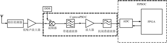 混频器、带通滤波器、放大器和抗混叠滤波器都可以由Cypress的PSOC器件cy8c23x33来统一实现。PSOC模拟系统包括一个8位SAR ADC和4个可配置模块,每个模拟模块由一个运算放大器电路组成,允许模拟复信号流的建立。同时,模拟外围部件非常容易被定制从而满足特殊应用场合的需求。PSOC可以分别实现一个可编程带通滤波器和一个低通滤波器以替代接收机前端需要的带通滤波器和抗混叠滤波器,实现一个可选增益高达93dB的仪表放大器以替代中频放大器,一个乘加累积器提供了一个快速8位乘法器以替代混频器,以上可编程模拟器件均能基本满足接收机前端性能要求。我们使用PSOC设计器进行PSOC的工作配置,写入使用PSOC的应用程序并调试应用。拿放大器来举例,首先在设计器中找到这个模块并新建一个电路,搭好外围电路元件,按照建立时间、转换速率和增益带宽等几个参数设定好初始值,产生应用程序代码,然后写入主程序和子系统的任何子程序,如果所有程序正