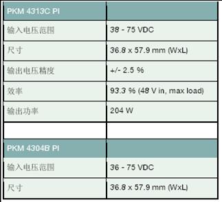 PKM4213C模块,物理尺寸是相同的,由于有输出电压反馈电路是其输出精度可达正负2.5%,适合在作为冗余系统应用的电源模块内使用。当然达到这个性能也是有代价的,效率只有93.3%,比PKM4304B模块低。由此我们可以得出结论,在冗余系统中使用的电源模块,其功耗会比非冗余系统使用的电源模块高。其产品封装的功率密度将是一个挑战。