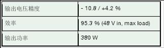 图15和图16总结了两种电源模块的一些参数特性,它们的输入电压范围基本一致,输出电压都是12V。它们基本上是同时代的产品,在效率的功率密度方面基本上是业界的领先者。它们的形状和尺寸几乎是一样的。PKM4304B模块只有前馈环而没有反馈环,因此是半稳压的。这样可以简化控制电路部分的设计,但如图所示输出电压会有跌落。额外的空间节省可以用来加强功率部分,从而导致这个模块可以输出380瓦,同时达到高效95.3%。这个模块并不是为了冗余应用而设计的,应作为标准的中间母线电源模块。