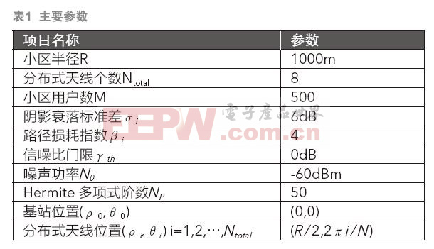 针对以上理论分析,本节将运用计算机仿真,验证基于中断概率的信道智能分配算法在信道利用率上的优势。不失一般性地,假设测试小区是一个半径为R的圆形区域。在该区域中,分布式天线均匀分布在半径为R/2的圆上,基站位于小区中央。设天线总数为Ntotal,移动台均匀分布在小区内,系统允许的信道衰落门限值为145,移动用户的最大发射功率为22dBmw。