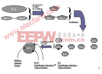 如图1所示,路由域包含路由域,递归的定义了连续的分层路由等级。一个独立的RP与一个路由域相关联。依此类推,RP自身是由分布式的RC来实现的,RC1由RPRA 而来,RC2由RPRA.1 和RPRA.2 而来。可以发现RCD分发接口与RC分发接口的特征是一致的。