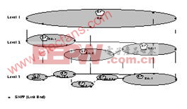 图4给出路由域的一个示例,高层路由域(父)RA包含低层路由域(子)RA.1, RA.2和 RA.3。同样,RA.1和RA.2进一步包含路由域RA.1.x和RA.2.x。