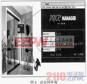 更衣室内有一台监视器(图4)显示顾客选择服装的信息和其他相关的细节。该显示器显示在房间里的衣服总价钱,以及所选择项目(或在货架上类似的衣物)的折扣等。你可以在显示器上找寻相关服装的详细资料(例如,尺码,品牌,材料)。此外,系统还可以向该客户建议其它感兴趣的服装。