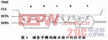 当CLS为低电平时,表示磁卡已经进入读卡器,开始刷卡;当CLS由低变高时,表示磁卡已经离开读卡器,结束刷卡。在CLS为低的时候,每次RCPA下降沿出现时,RDPA送出一位数据。