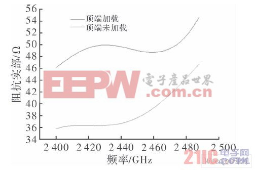 图7 天线阻抗实部随频率变化曲线