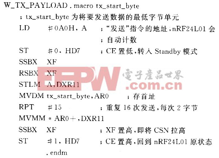 假设在(3)中已经将数据宽度定为32字节,则W_TX_PAYLOAD.macro tx_start_byte