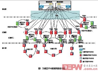 城域网骨干层一般由DWDM/OTN系统承载,实现节点之间传输链路的保护。传统的MSTP汇聚层网络已不适应大颗粒业务发展需求,通过PTN网络可以很好地解决城域汇聚层中存在的问题,主要扩容汇聚层BRAS/SR/OLT网络之间的链路带宽、提升设备性能和容量,PTN网络还可以实现接入点之间的传输链路保护、优化网络结构和实现城域网的多业务承载。