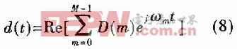 如对d(t)以fs=N/T=1/(Δt)(N为大于或等于M的正整数,其物理意义为信道数,在这里N=M)的抽样速率进行采样(满足fs>2fmax,fmax为d(t)的频谱的最高频率,可防止频率混叠),则在主值区间t=[0,T]内可得到N点离散序d(n),其中n=0,1,…,N-1。抽样时刻为t=nΔt,则:
