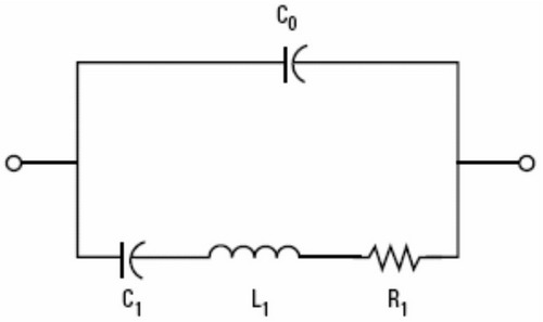 石英晶体的物理常数决定了等效电路图2和图3中所示的C0,C1(Motional Capacitor),L1(Mass)和R1(Bulk Loss),其中C0的另一部分来源于电极,固定器和引导线。