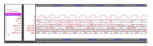 記憶體在控制讀寫方面,需要注意的是當掃描到偶數列時,儲存奇數列之記憶體的讀寫腳位會一直維持在讀的狀態;而掃瞄到奇數列時,儲存偶數列之記憶體的讀寫腳位也會一直維持在讀的狀態。圖5.5(a)是掃描到奇數列時,而圖5.5(b)則是為掃描到偶數列時。可注意到WEn的差異性。