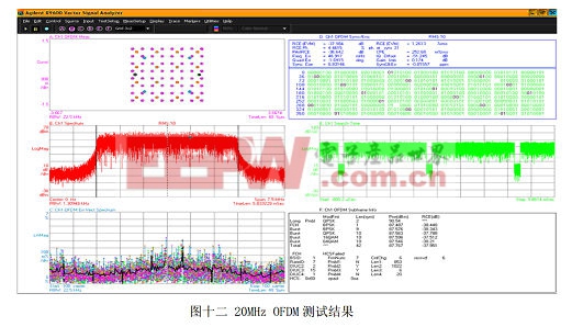 图十二,十三,是基于20MHz OFDM信号的实测结果,显示TRF3711完全能够满足宽带信号的基站应用。