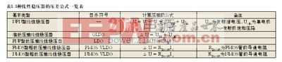 上述5种线性稳压器的压差计算公式见附表1。