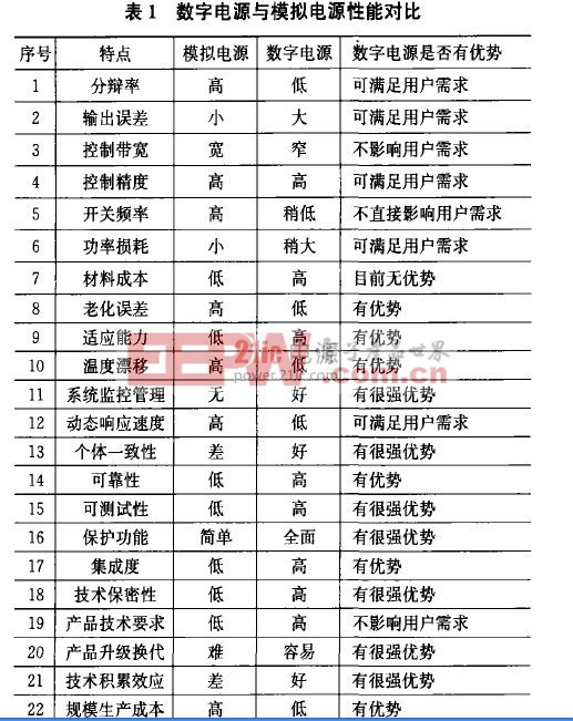 拟电源高,以技术获取经济效益的空间更大,这在市场需求量大的通信用电源、工业用电源、电力控制电源,以及金融业、服务业用不间断电源等较大功率的产品中,数字电源的经济性优势更加显现参见表1.